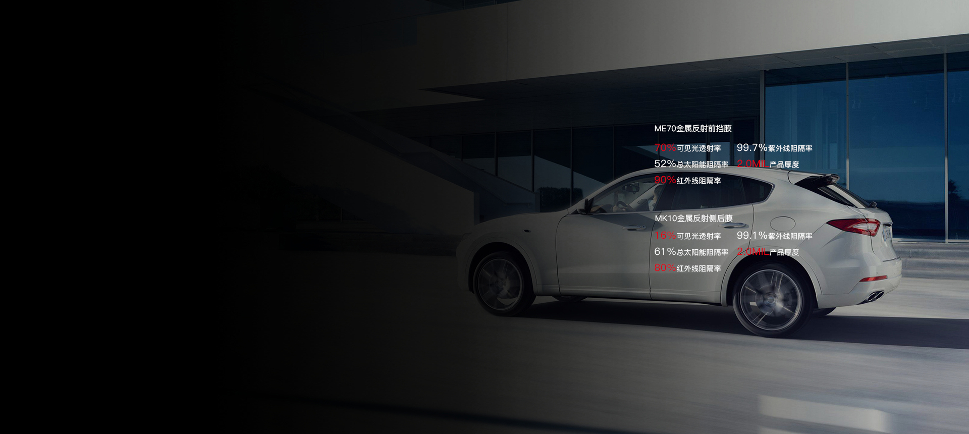 出眾的防爆隔熱性能,防止意外玻璃破裂碎片對(duì)身體的二次傷害,成為安全出行的不二選擇,出色的防眩光性能,有效緩解逆光行駛的視覺疲,降低意外概率,確保行車安全。安全行駛高枕無憂。