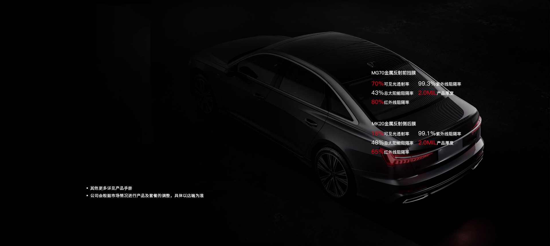產(chǎn)品兼具美觀的同時(shí)有著出眾防爆隔熱性能。有效阻隔夏日強(qiáng)光,安全更舒適,讓行車從此扔掉太陽鏡。晶瑩剔透、光芒四射、直面前路,魅力無限。